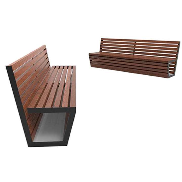 The Metro Frame Bench combines industrial strength with contemporary style. Featuring rich timber slats framed by a bold, powder-coated steel shell, it offers both durability and elegance for high-use public areas. Its angular profile adds a modern architectural touch, making it perfect for city streetscapes, transport hubs, and community spaces.