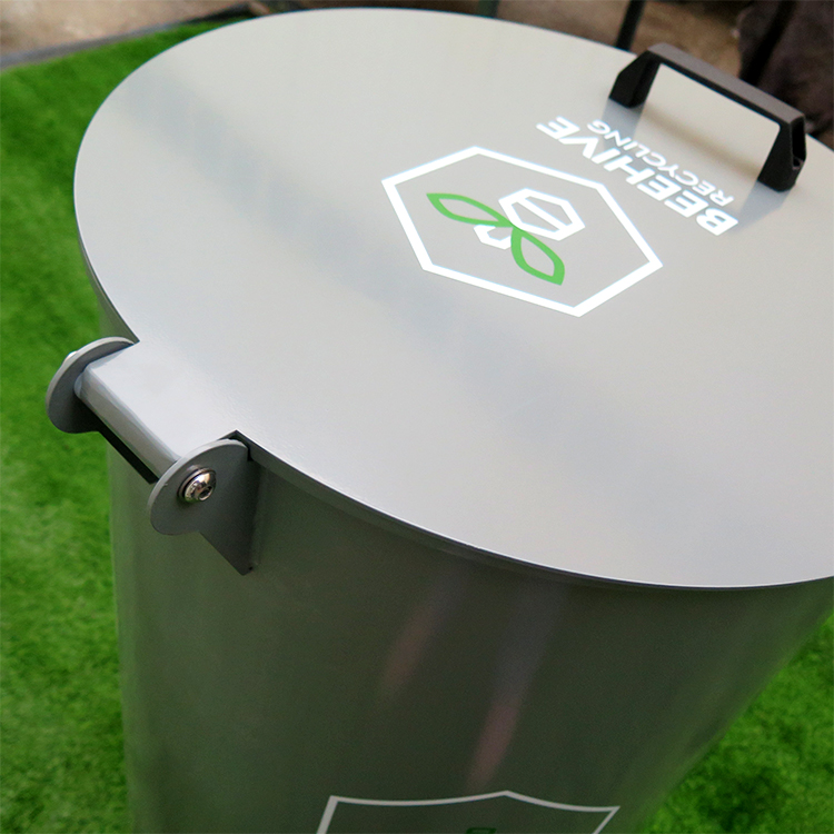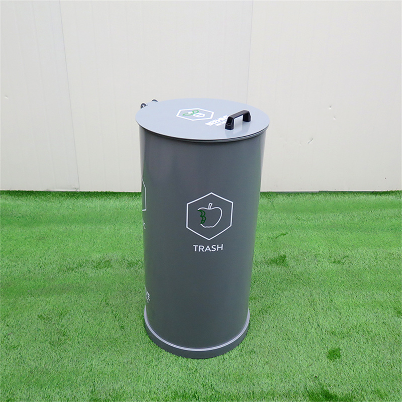 Round Outdoor Metal Rubbish Bin with Secure Lid for Public Spaces