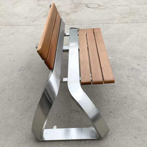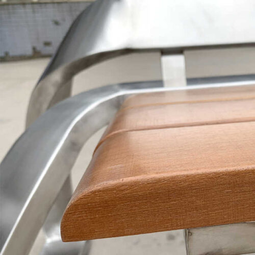 The ArcBench combines contemporary curves with natural warmth. Crafted from durable hardwood slats and polished stainless steel legs, it’s built for lasting comfort in public parks, patios, and walkways. A bold yet refined statement for modern outdoor spaces.